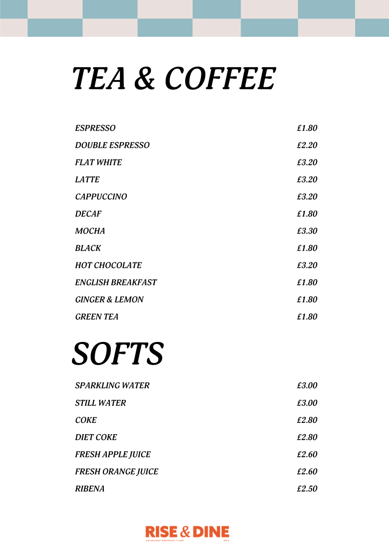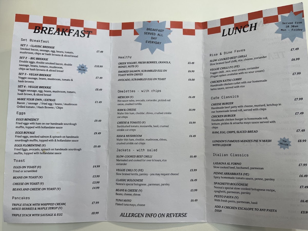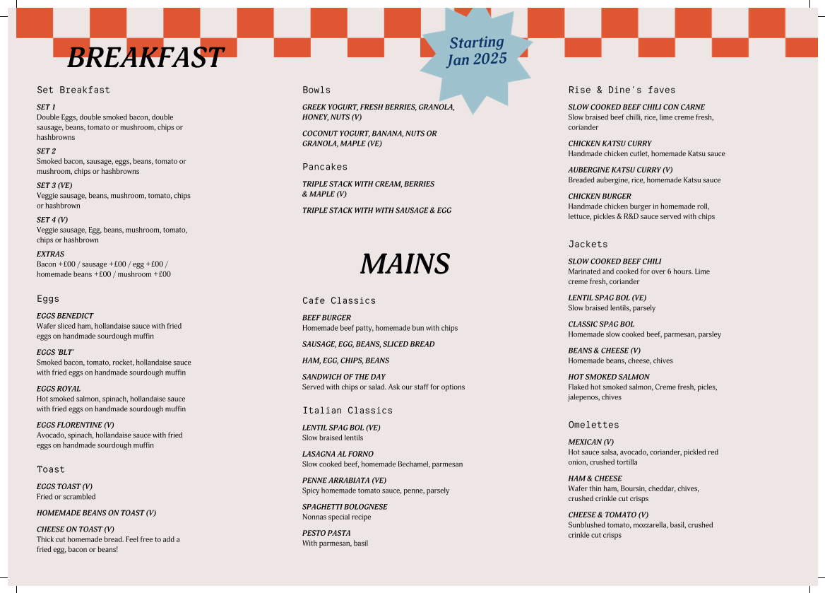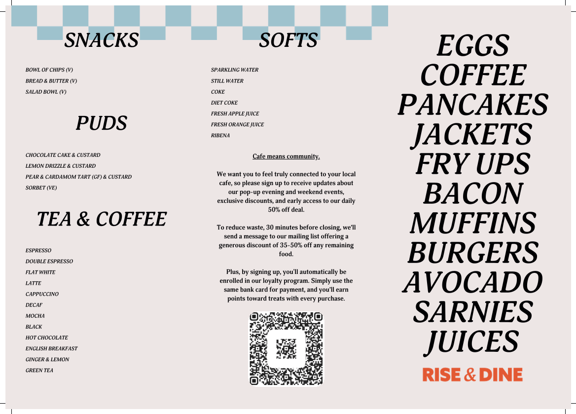 Rise and Dine Cafe Menu